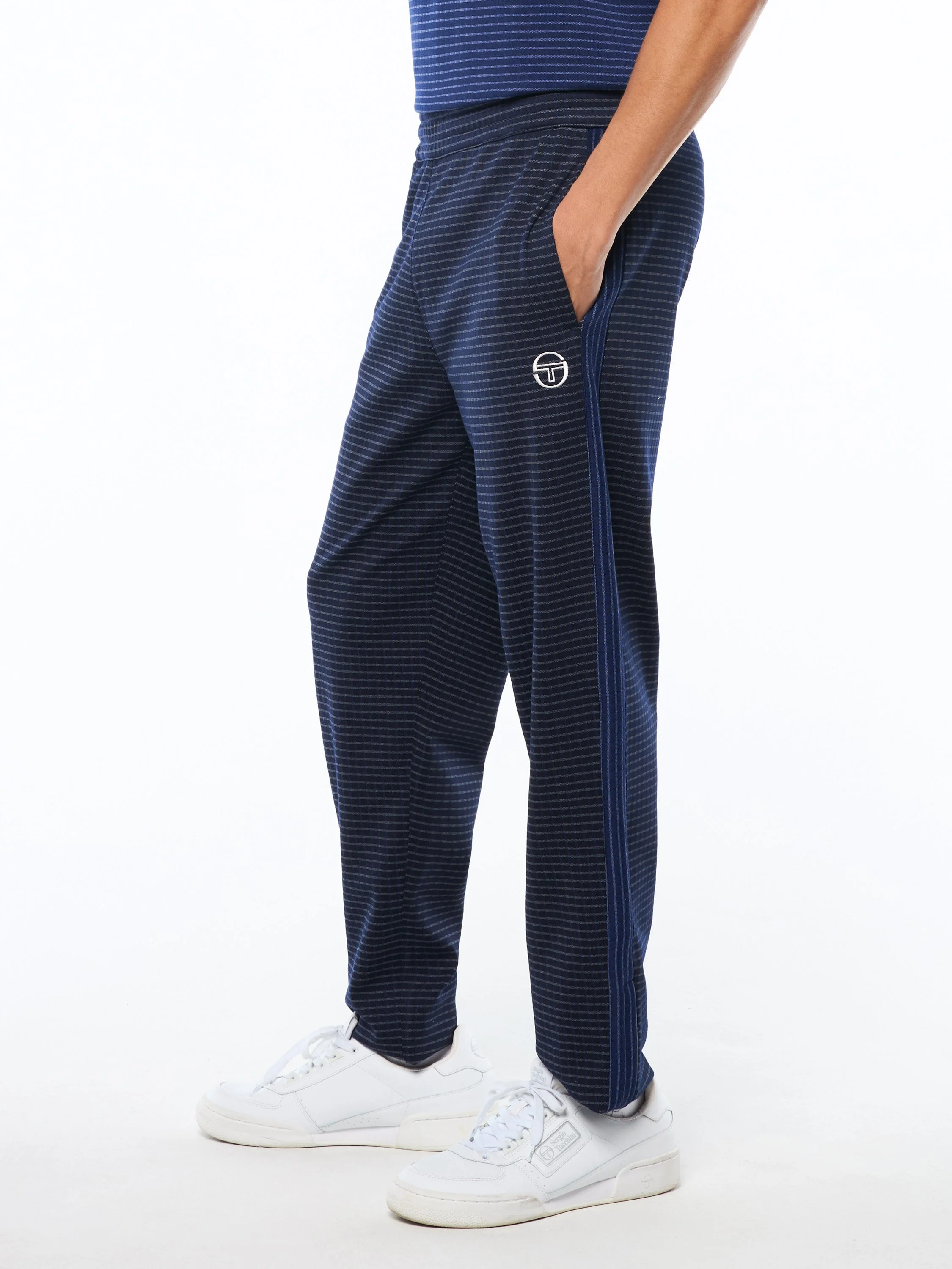 Classic track style gets a refined refresh with the Rete Track Pant. Crafted from a comfortable jacquard knit blend with stretch, it features allover check patterning that adds a sharp, elevated look while staying rooted in Sergio Tacchini's sport heritage. Designed with a contrast color paneling on sides, it's completed with signature 'ST' monogram logo at left thigh, for an unmistakable touch.Pair it with the Rete Track Jacket (sold separately) to complete the look.