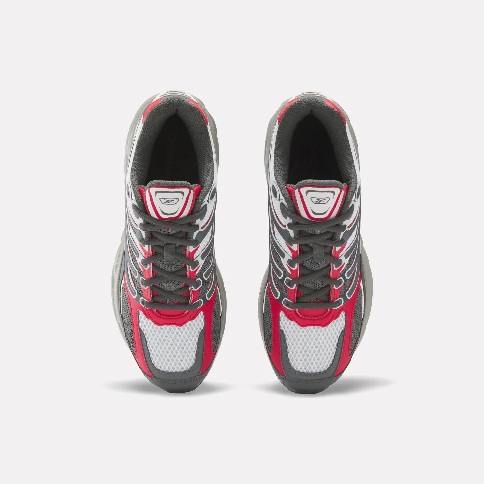 Zapatos Reebok Premier Road Control, combinación de blancos, rojos y negros que resalta en cada paso. Tejido sintético y malla para un confort óptimo y ventilación natural. Diseño moderno y versátil, ideal para looks casuales o actividades deportivas. Un toque de elegancia en cada detalle.